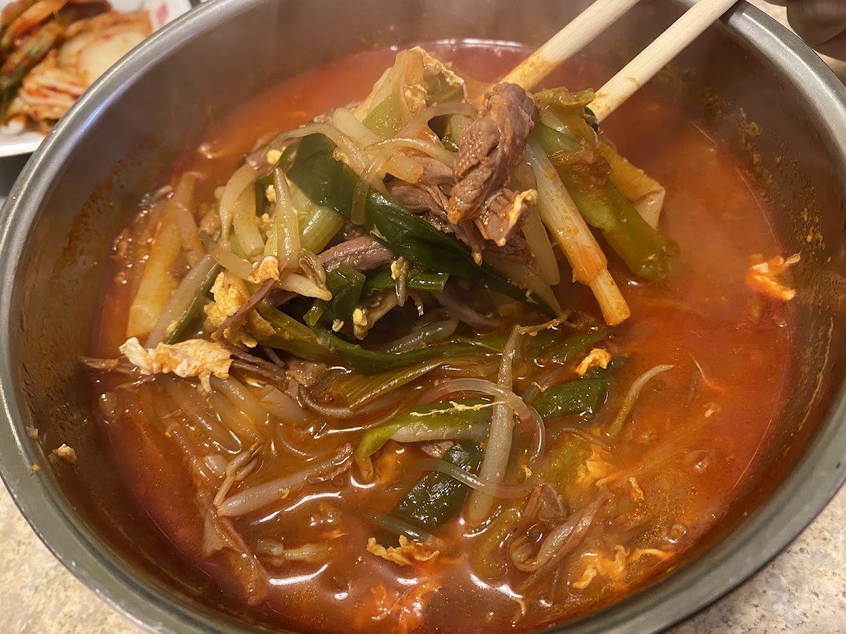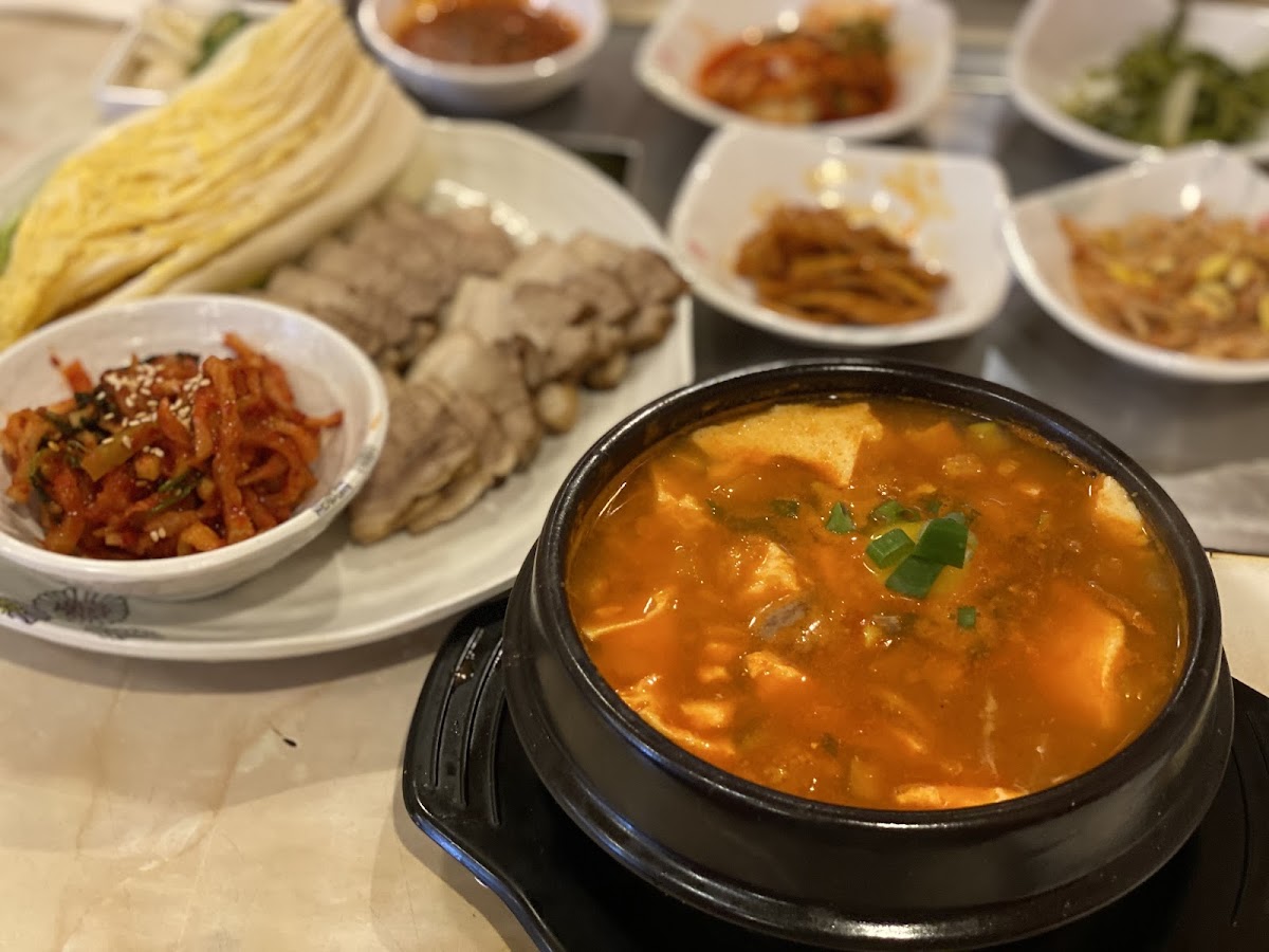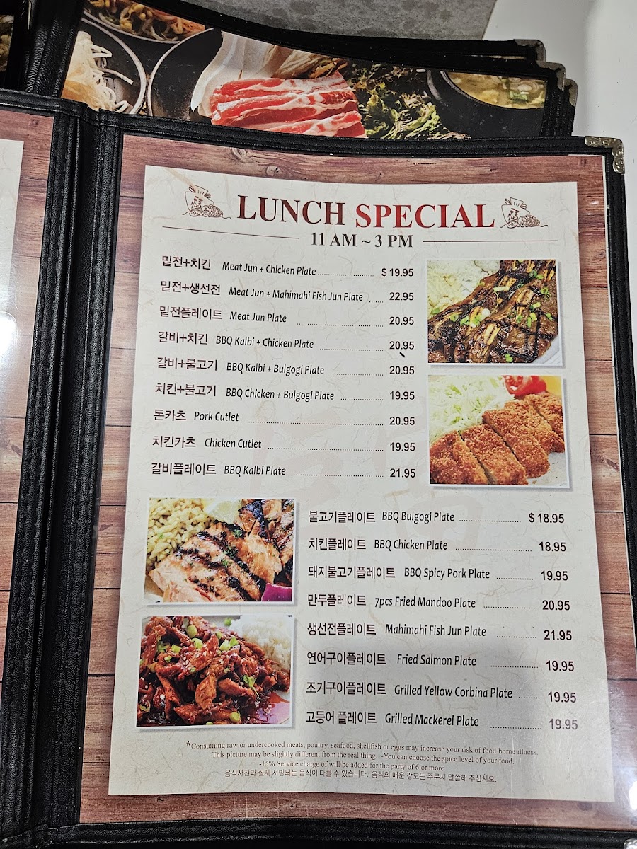 The menu offers a variety of classic Korean options, with highlights like Kalbi served alongside spicy and fresh greens, Bulgogi Dolsot Bibimbap, and distinctive stews such as Kimchi Chige and Yukgaejang. Grilled dishes like Meat Jun plates and BBQ Chicken Bulgogi are also solid choices, especially for those craving a filling, flavorful meal without the fuss. Complementing the meal, there’s a decent range of banchan (side dishes), adding variety to the experience without overwhelming the straightforward flavors. For a light Korean comfort meal or a quick lunch, the Meat Jun and Chicken plates are practical picks that regularly satisfy.